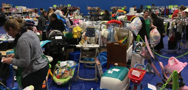 We at BabyGotChat looooove this sale! We’ve talked about it lots of time on our blog, like here and here! This is the Comic Con of baby shopping. Twice a year we make our way to the gym at SUNY Purchase, which is crammed with enough kid stuff to keep the SUNY Purchase students away for days! Come with a list, things go fast and if you don’t have a game plan (baby gates, high chair, puzzles), you might get lost in the sea of Elmos.
