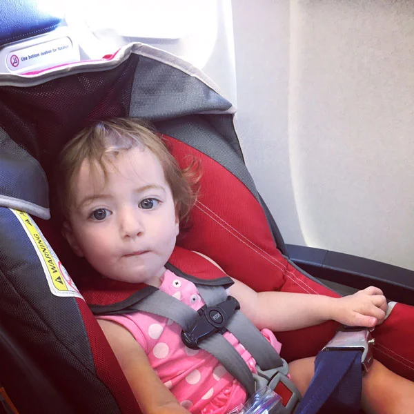 - Having your child in the car seat has an added bonus of safety, a familiar and comfortable place for them to settle in, and barriers from the grime of the plane.