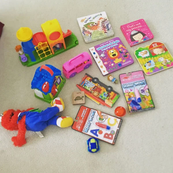 - Once you unpack, put all the toys you brought on the floor together and take a photo. Then when you're leaving it will be easy to see if anything is missing.