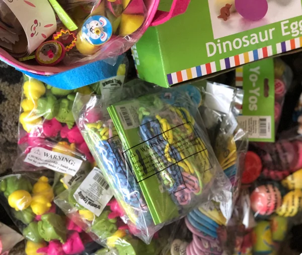 Finding suitable egg stuffers for toddlers is tricky. Since everything you give them fits into a plastic egg, you are basically hosting a choking hazards party. I've managed to find toys and food that are fun and will work for all but the most determined of object-swallowers: