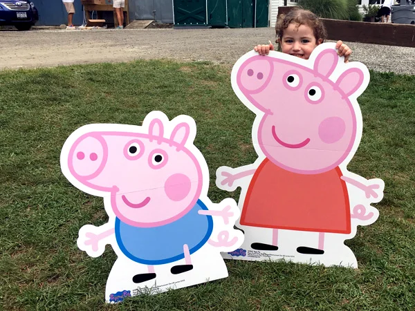 Our 2.5 year olds had a blast on the inflatables, the foam machine, and playing in the sand by the lake. The food for purchase was delicious and reasonably priced (or maybe it seemed that way because we just got back from Disney World). There was Peppa Pig merchandise for grabs at suggested donation and a raffle of Peppa-themed prizes. We went home with a free bottle of laundry detergent from sponsor Mrs. Meyer’s Clean Day. There was a special VIP area for children and families affected by pediatric cancer that featured toys and giveaways. This was one of the best local events we’ve ever been to, and we can’t wait to be first in line next year to get tickets. Put this on your radar for summer 2018 and don’t worry, we’ll remind you next year.