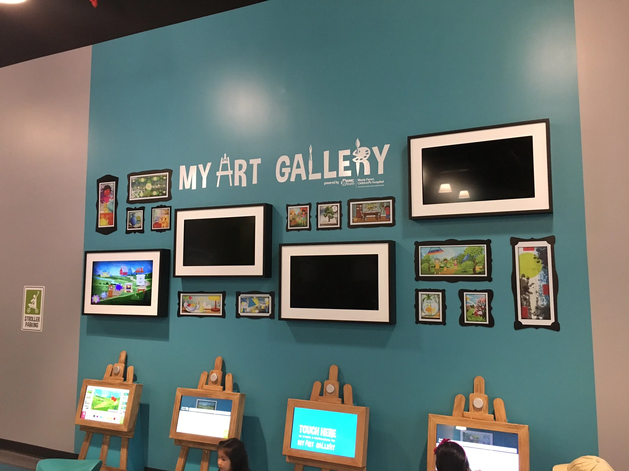 There’s also a giant Big-esque piano, an interactive 4-sided display about the seasons, and a tile table for block free play. Younger kids will like the open play area and large exhibits, while older kids (up to about 6) will like the block station and the four art “easels” that contain touch screens with a painting program.